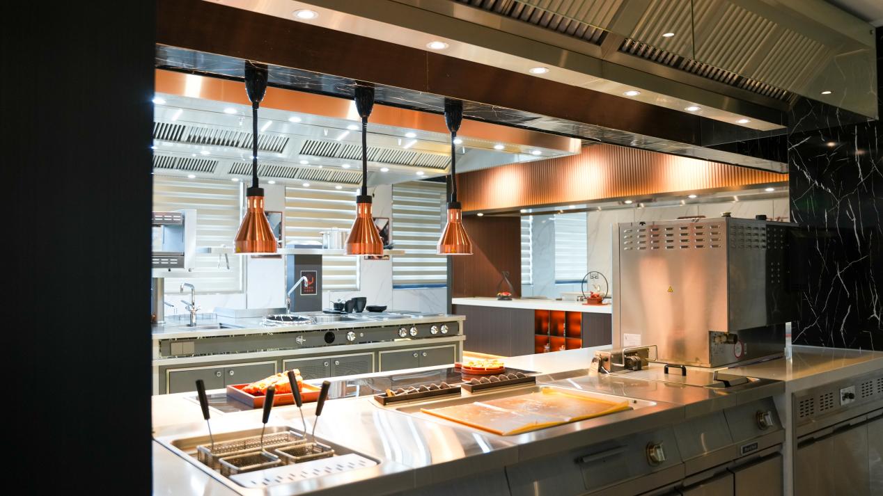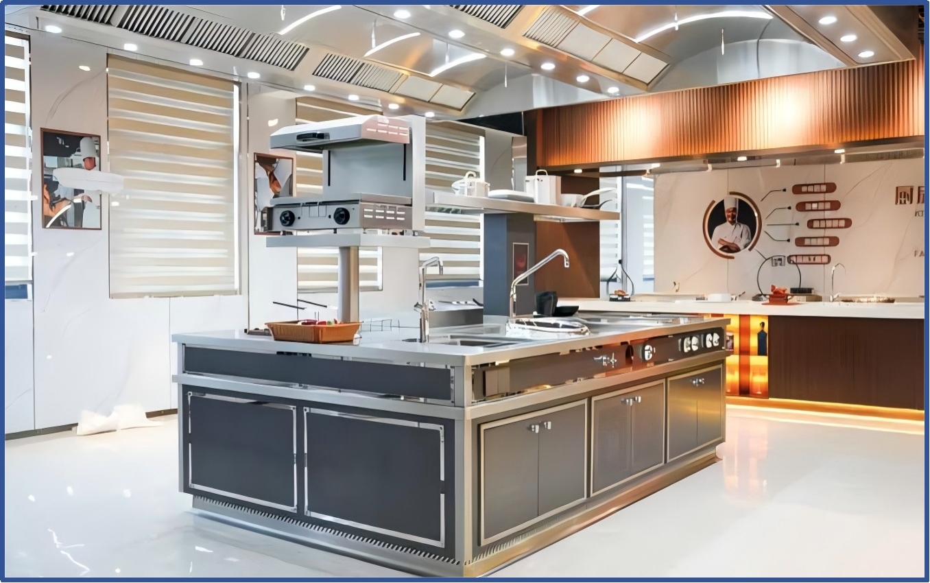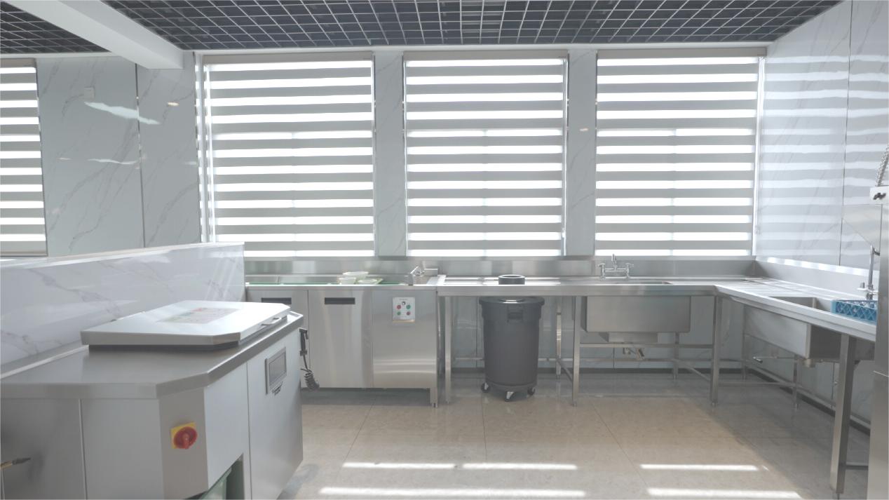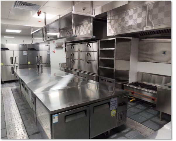 工厂展厅:设有500平方米可视化设备展厅,划分烹饪间、冷菜间、加工间、洗碗间、分餐间等功能区域,直观呈现厨房规划动线与设备实景。可以客户参观实际场地,提前模拟了解完工项目情况,定做设备。